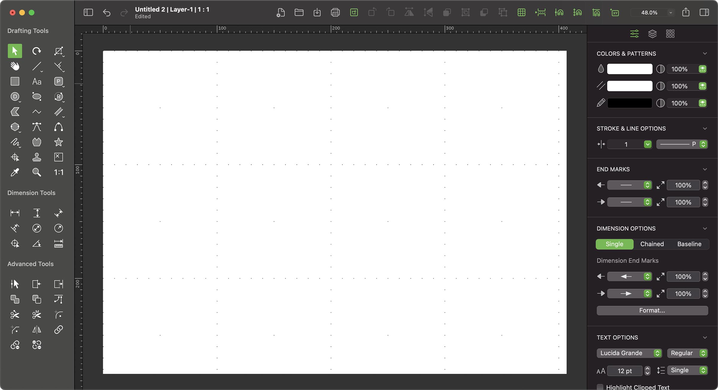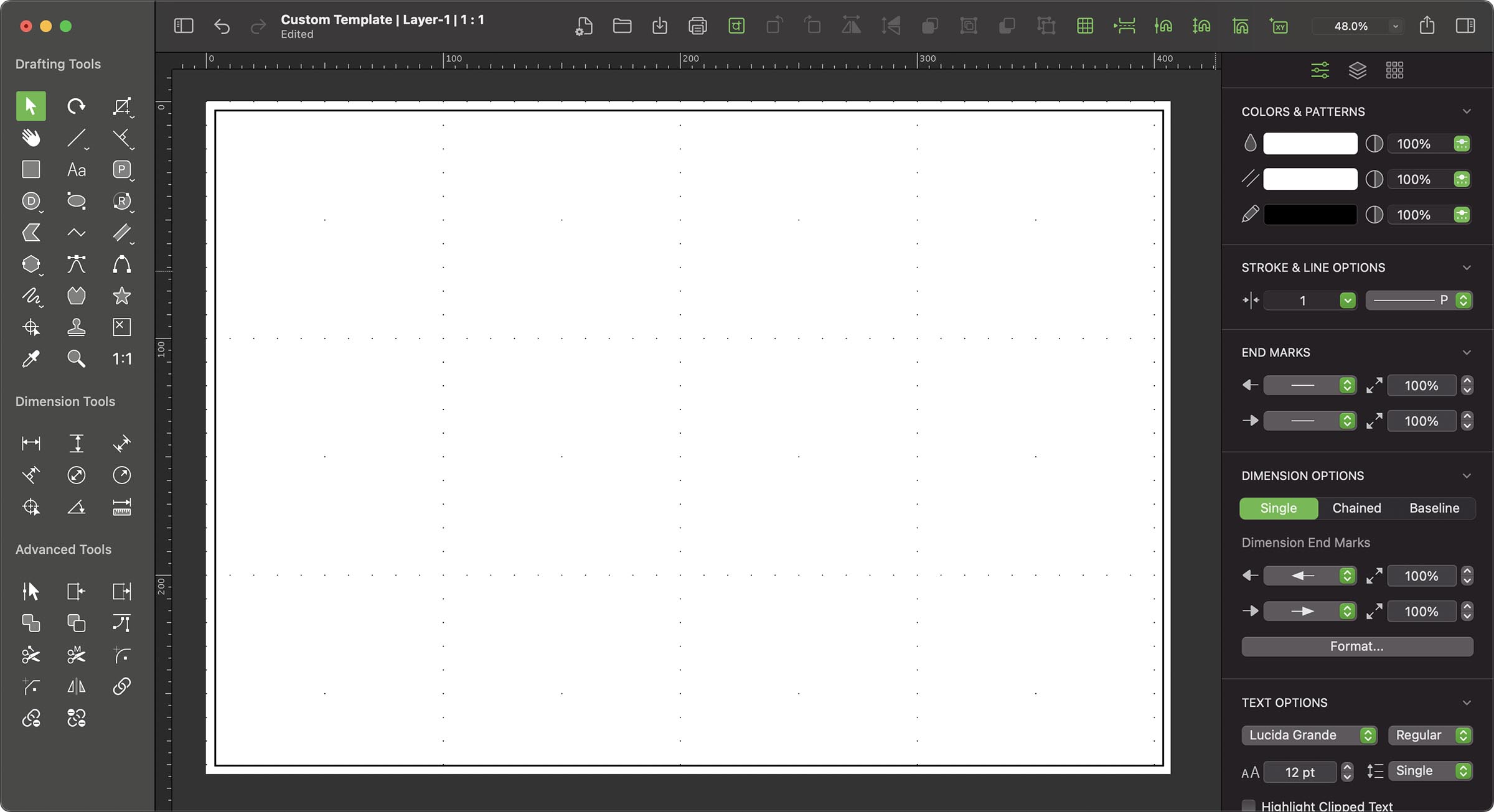 MacDraft will default new documents to be at 1:1 scale. Lets leave this page set to that and treat it as the correct size.