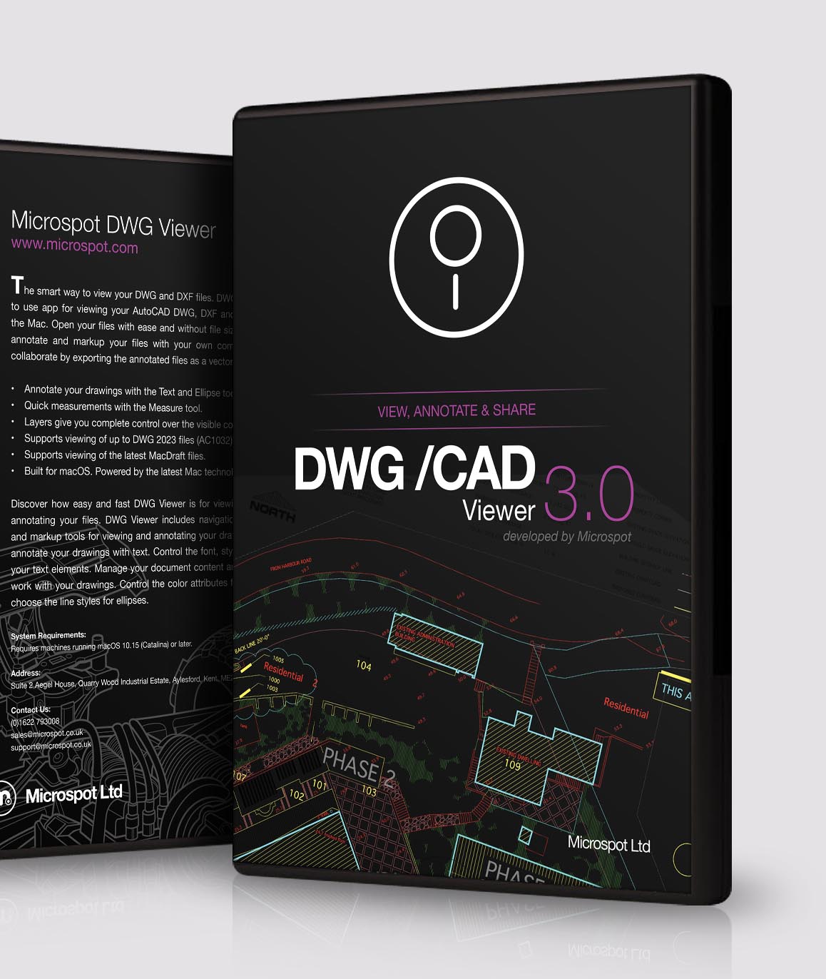 DWG Viewer is an easy to use app for viewing your AutoCAD DWG files and Microspot MacDraft documents on the Mac. Perfect for teams collaborating on projects. View files stored locally on your machine, then annotate with text tools and options, export as a vector PDF, then share or print.