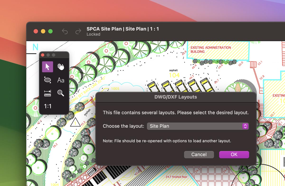 An easy to use app for viewing your DWG and MacDraft files on the Mac. View files stored locally on your machine, then annotate, export as PDF or print.