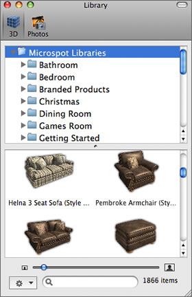 The latest version of Interiors Professional has a much larger library, boasting almost 2000 library items, available for you to use in your rooms. Simply drag and drop these items into your scene where they can be customized to your own requirements. With this customizability and the shear quantity, you will find yourself with a comprehensive selection of furniture, products and electronic goods to make your designs truly unique.