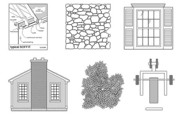 The preview images below show a selection of the items that are included in the Common Home Design Libraries.
