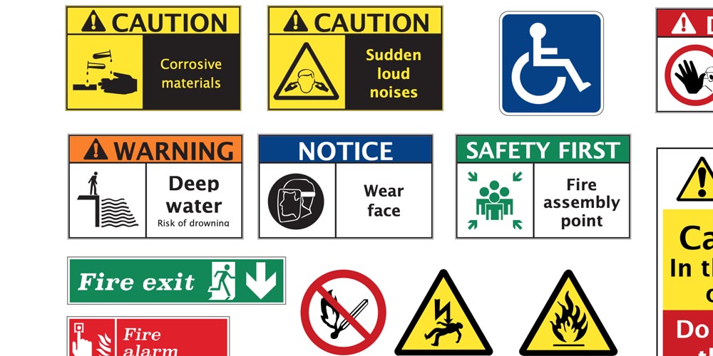 Over 750 unique items ranging from Hazard & Danger signs to General Notices, each of which are fully scalable, vector drawn graphics. All of the signs have been drawn to conform with the HSSA style standards and the ANSI / OSHA layout specifications and are great for printing.
