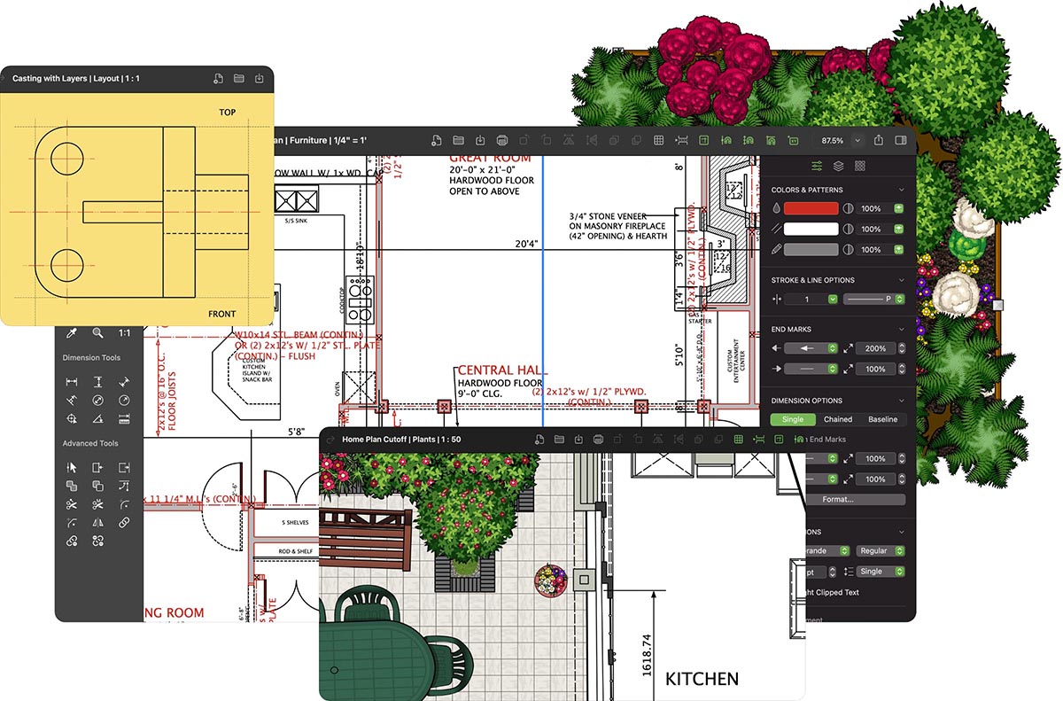 With the flexible tools and dynamic options, you can design anything - Architectural drawings; engineering and electronic layouts; or home and commercial floor and landscape designs.