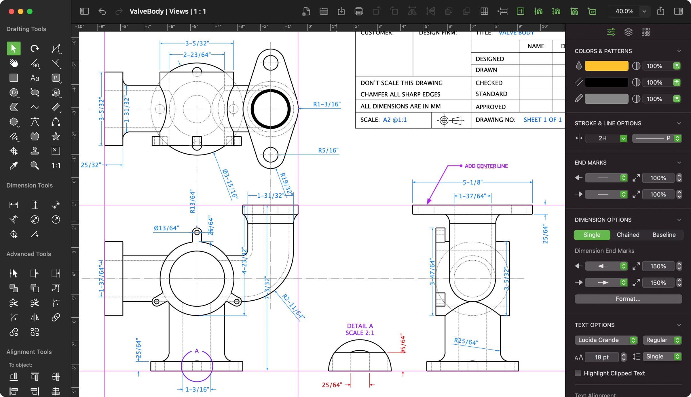 Sketch, draw and present. The ultimate 2D CAD software from start to finish. Native to macOS, built with the latest technologies and designed for the future, MacDraft 8 is a feature-rich solution, that gives you all the tools you need for a truly collaborative and flexible 2D CAD experience. Designed for architects, engineers and construction services as well as professional CAD users, designers, educators and hobbyist. MacDraft will give you the confidence and flexibility to design anything.
