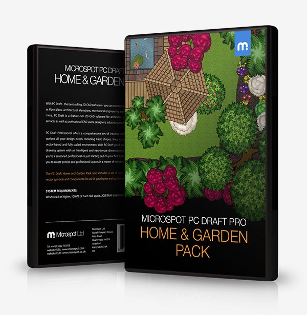 PC Draft Pro Home and Garden includes a set of over 1100 symbols, items and parts for use in home, garden and landscape CAD plans.