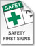 Includes 29 Safety First signs that are used for awareness to emergency areas and refernece points for first aid, safety equipment and other safety information. All of these graphics are designed to conform with the ANSI / OSHA style guidelines.